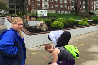 The university was recently honored with 2014 Tree Campus USA recognition by the Arbor Day Foundation for its commitment to effective urban forest management. The dedication celebration included a tree walk, tree planting, and a chalk it up event where students wrote and created art about what benefits trees provide.