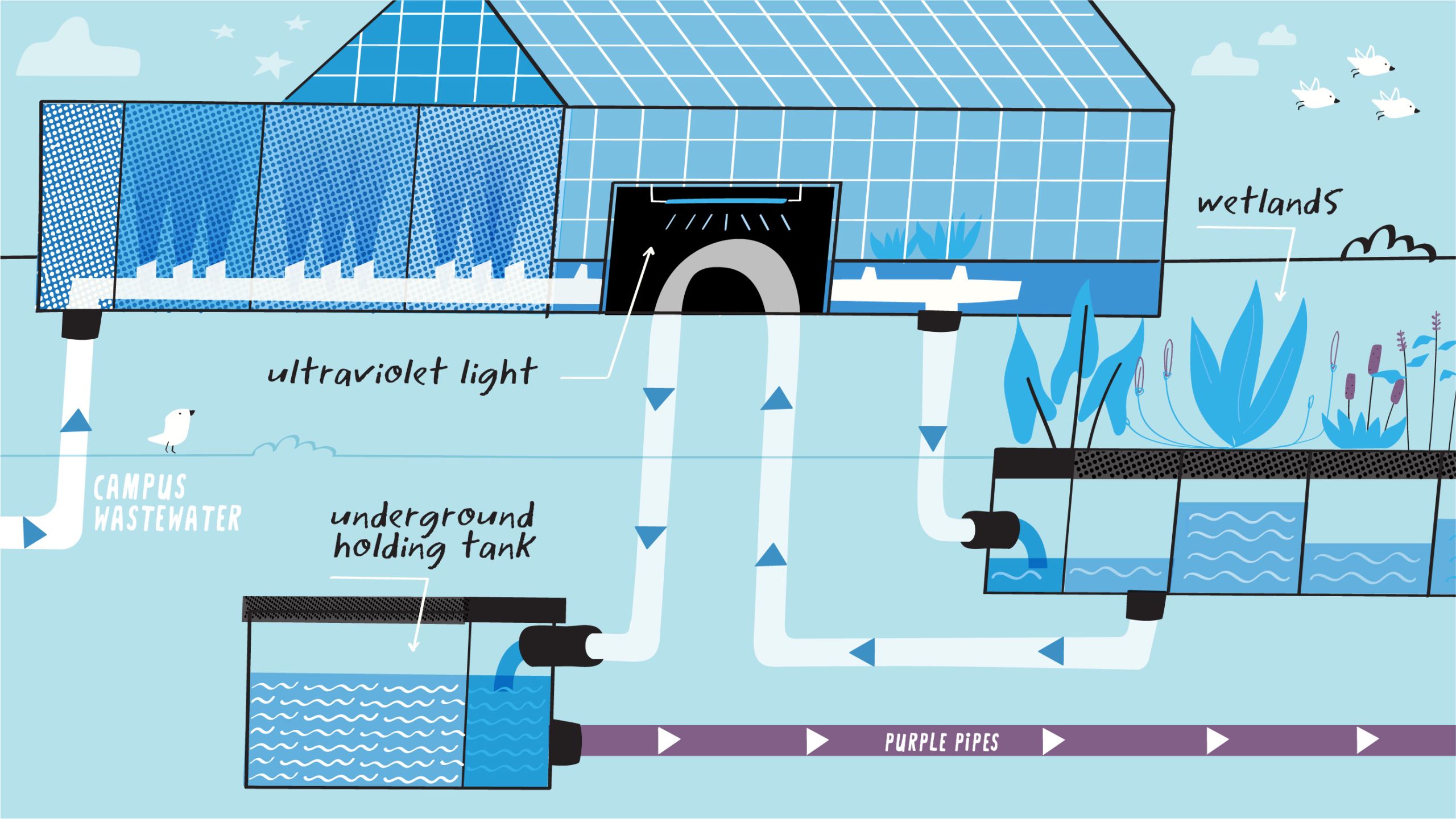 Since April 2015, Emory’s WaterHub has reclaimed and recycled more than 300 million gallons of campus wastewater for use in Emory’s steam plant and three campus chiller plants, as well as select residence hall toilets. It provides more than 40 percent of the university's total campus water needs.