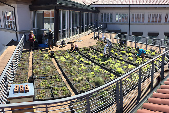 An abandoned rooftop garden was recently revamped through a class project and was funded by the university's Sustainability Incentives Fund grant through Emory's Office of Sustainability Initiatives. The original project in 2008 was part of a student-led pilot study exploring the benefits of vegetative roof coverings and had been largely unmaintained since.