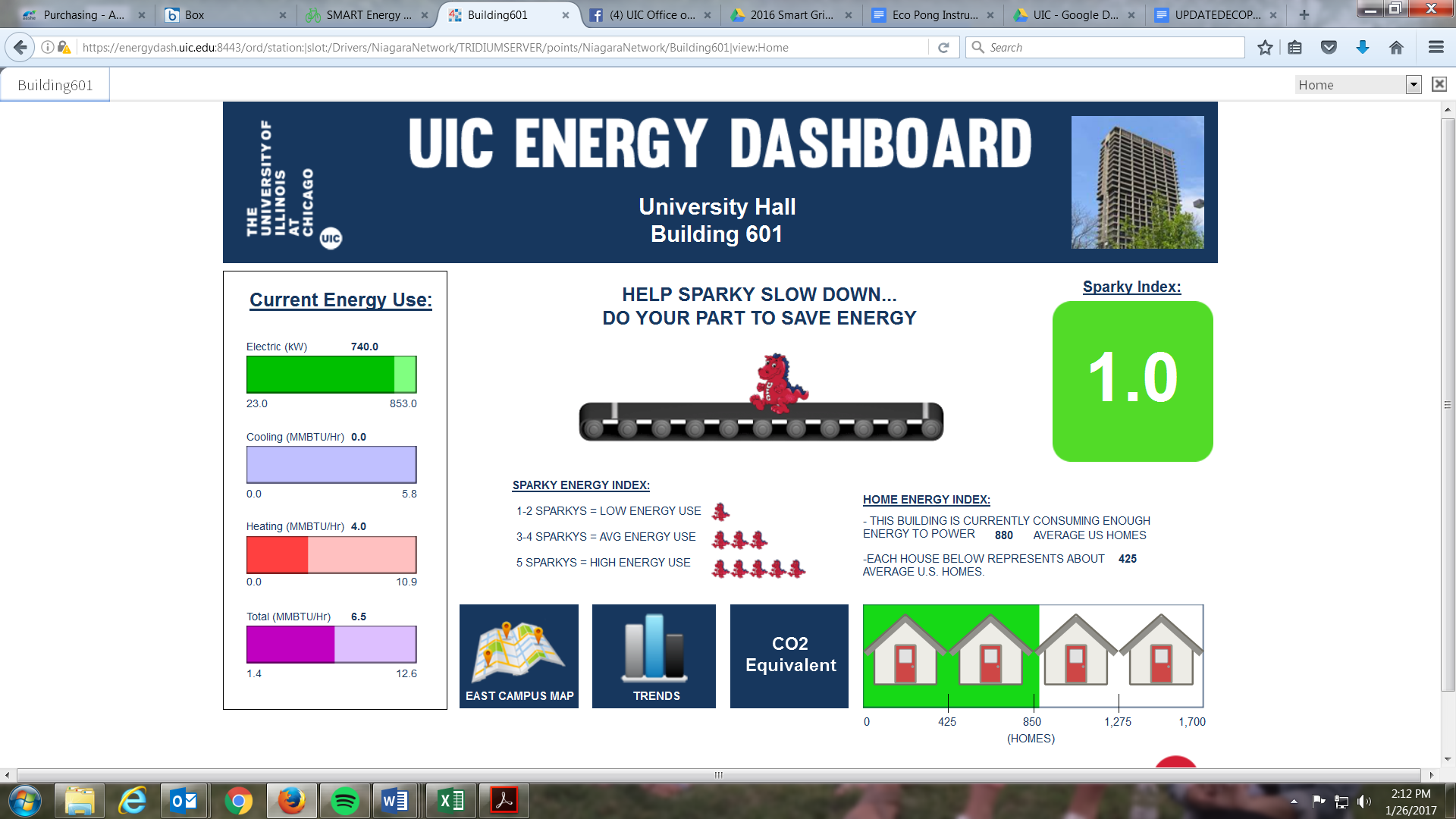 The newly improved dashboard allows campus users immediate access to real-time energy displays. Upgrades include a new analytics platform, improved navigation and added campus-wide data streams. Users can see the energy use for 13 campus buildings.