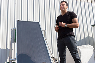 Located in a cold-weather climate with an average of 174 sunny days per year, students, in collaboration with the Sustainability Office, are involved in testing the efficacy of flat plate collectors versus evacuated tubes to determine the best renewable energy solution for campus' hot water.