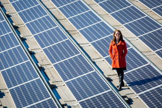 In early June, 54 solar panels were installed on the university's Facilities & Services roof. The 20.25-kilowatt solar-electric array provides approximately 18 percent of the total building energy usage.