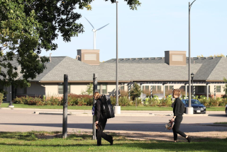 Roughly 70 percent of the campus' electricity is generated by renewable energy–two university-owned, 1.65-megawatt wind turbines and several photovoltaic systems. To achieve carbon neutrality, the campus recently purchased renewable energy credits equal to the fossil-fuel produced electricity the campus uses.
