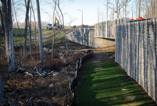 A new road that links the Storrs campus to a local route was engineered with a wildlife corridor that enables critters as small as salamanders to larger ones such as white-tailed deer to cross the road without danger from vehicular traffic. Further, the path of the road was designed to minimize destruction of surrounding wetlands.