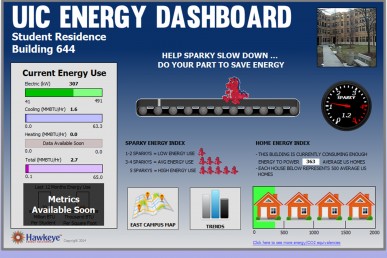 Trying to get students and employees involved in the university's energy conservation efforts, dashboards on display in nine campus buildings indicate the building's energy use by using the university's mascot, Sparky D. Dragon. University Office of Sustainability student interns helped launch the dashboard project in summer 2015.