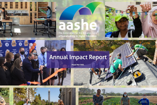 AASHE recently released an annual impact report detailing progress throughout 2021. Highlights include the introduction of a new award category, the Racial Equity and Sustainability Collaborations Award; publishing the second volume of No Sustainability Without Justice, an Anthology on Racial Equity and Social Justice; and information about the more than 20 advocacy initiatives that AASHE supported.