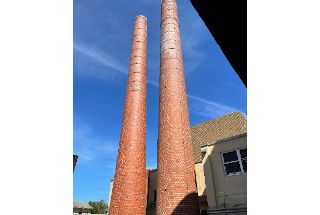 During winter break, two 100-foot smokestacks at American University that were part of the AU campus skyline for more than 60 years were removed. This is the final step in the university’s conversion to a low-temperature hot water heating system that is projected to reduce carbon dioxide emissions by approximately 40 percent.