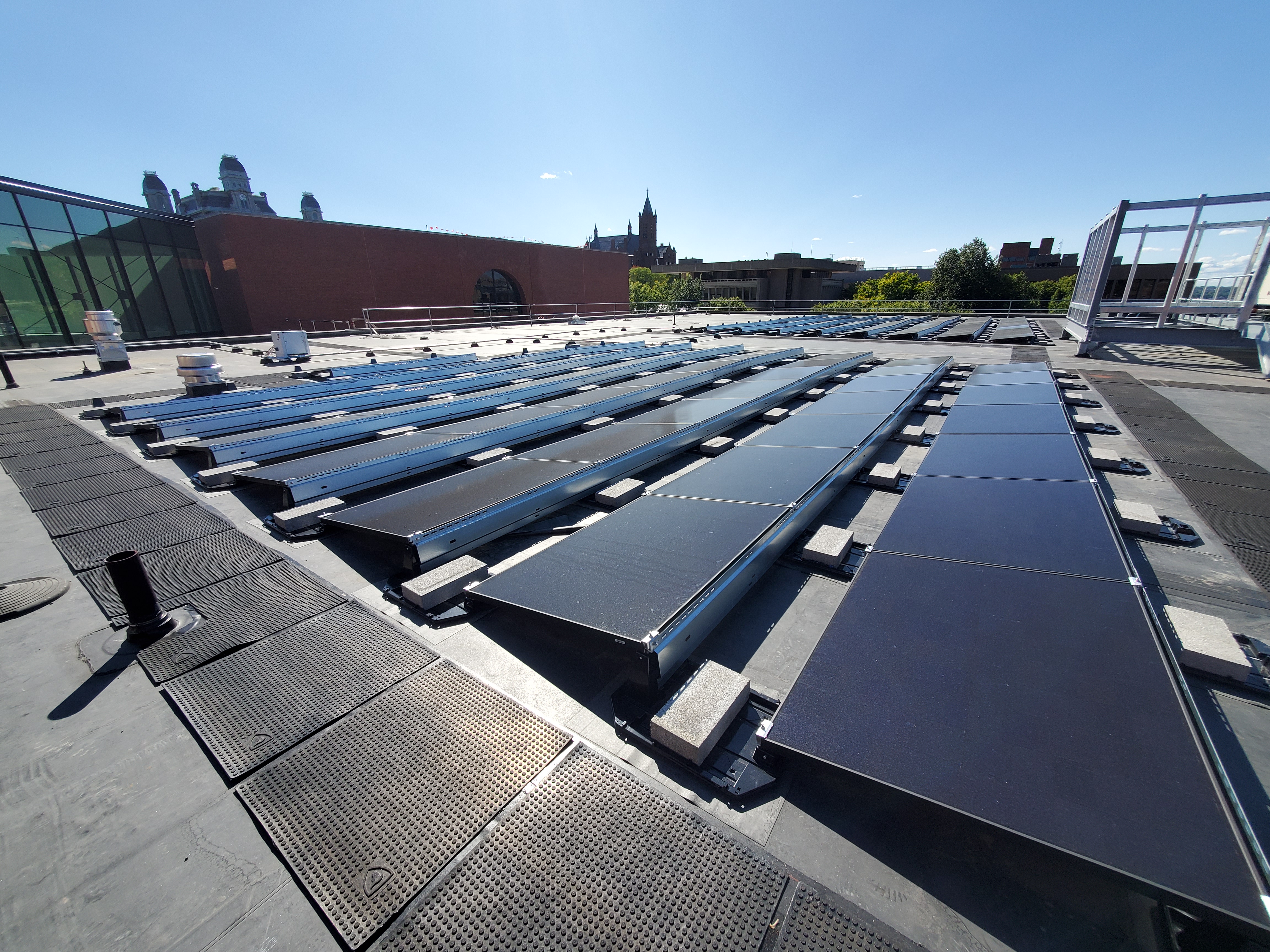 The college will soon add photovoltaic panels on two acres of land on the west side of campus and on six buildings. Once complete, the college will receive nearly 20 percent of its electricity needs from the solar installations.