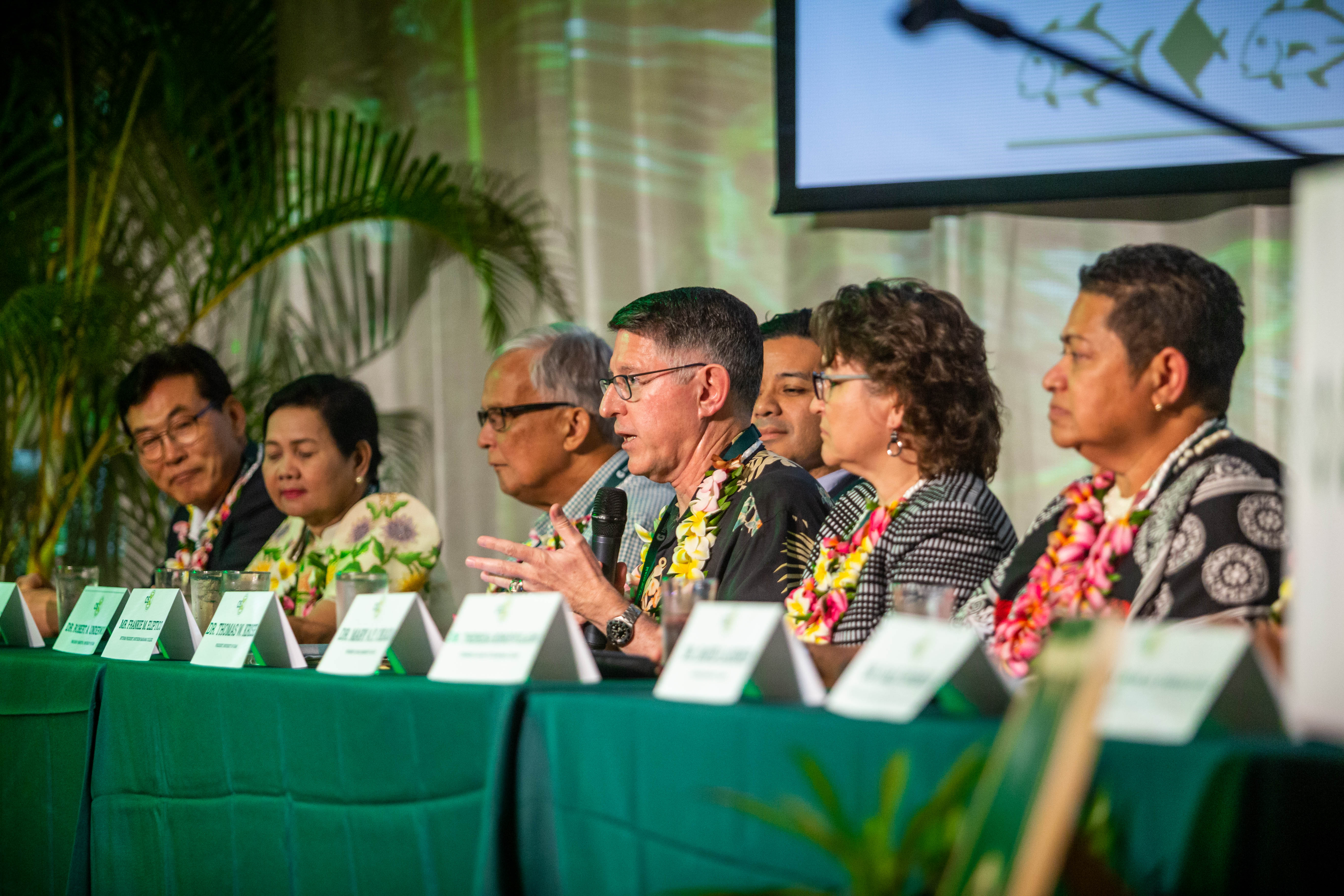At the Presidential Summit on Island Sustainability, the presidents of eight island colleges and universities committed to seek indigenous/island solutions to island problems, connect heads of research and workforce development with one another, create an inventory or website of best practices and solutions, and foster exchange visits of faculty, staff and students. The leaders present for the summit were from the University of Guam, Guam Community College, Northern Marianas College, the College of the Marshall Islands, the University of Hawaii, Western Philippines University in Palawan, Jeju National University in South Korea, and the University of the West Indies in Jamaica.
