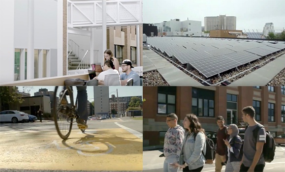 The university's redesign of its downtown campus was a $64-million project, with $4 million earmarked for specific green features, including ground-source heating and cooling, photovoltaic electricity tied to a 180-kilowatt battery bank, and a 6,600-gallon underground cistern that will capture and treat rainwater for toilet and urinal flushing.