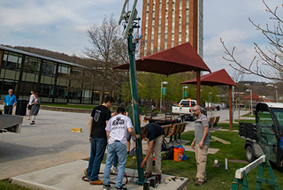 Students from the university's Mechanical Engineering and Electrical and Computer Engineering departments unveiled a solar-powered charging station in May. Designed as part of their senior capstone design project, the system consists of a single solar panel attached a 10-foot-tall pole. The panel rotates, allowing it to track the sun from morning until night, increasing the power generated.
