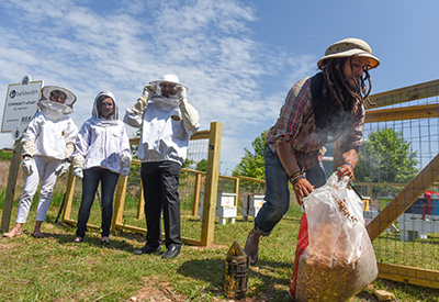 Thanks to a public-private partnership, a new community apiary with seven honeybee hives was inaugurated for Earth Day 2017. The new apiary will create opportunities for pollinator-related education.