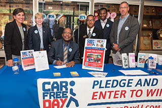 The community college and Suffolk County jointly hosted a Car Free Day Long Island Summit. The event, which SCCC President Shaun McKay kicked off, included discussion about sustainable transportation options available to the community in an effort to reduce transportation-related carbon emissions, which is 30 percent according to a regional sustainability plan.