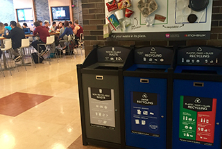 The new football stadium houses 14 concession windows where snacks and beverages are served in either compostable or recyclable containers. Members of student groups and other volunteers, called bin goalies, will be on hand during events to educate guests and keep the zero-waste system working.