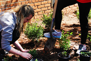 In an effort to conserve water and maintain an attractive landscape, the university uses a hydrogel system, which acts as a water and nutrient reservoir, allowing water to be released slowly into the soil and roots.